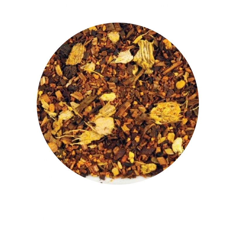 MEZCLA DE HONEYBUSH, CÚRCUMA, CANELA, PIMIENTA, JENGIBRE, LIMÓN Y VAINILLA.
